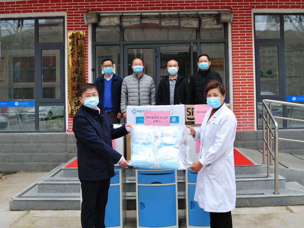 3月31日,财经系国际经济与贸易2010级校友胡鹏飞向校区捐赠1万个防护口罩,助力校区开学前疫情防控工作。校区管委副主任郭加书代表校区接受了捐赠,财经系、后勤管理部等相关部门负责人参加捐赠仪式。
