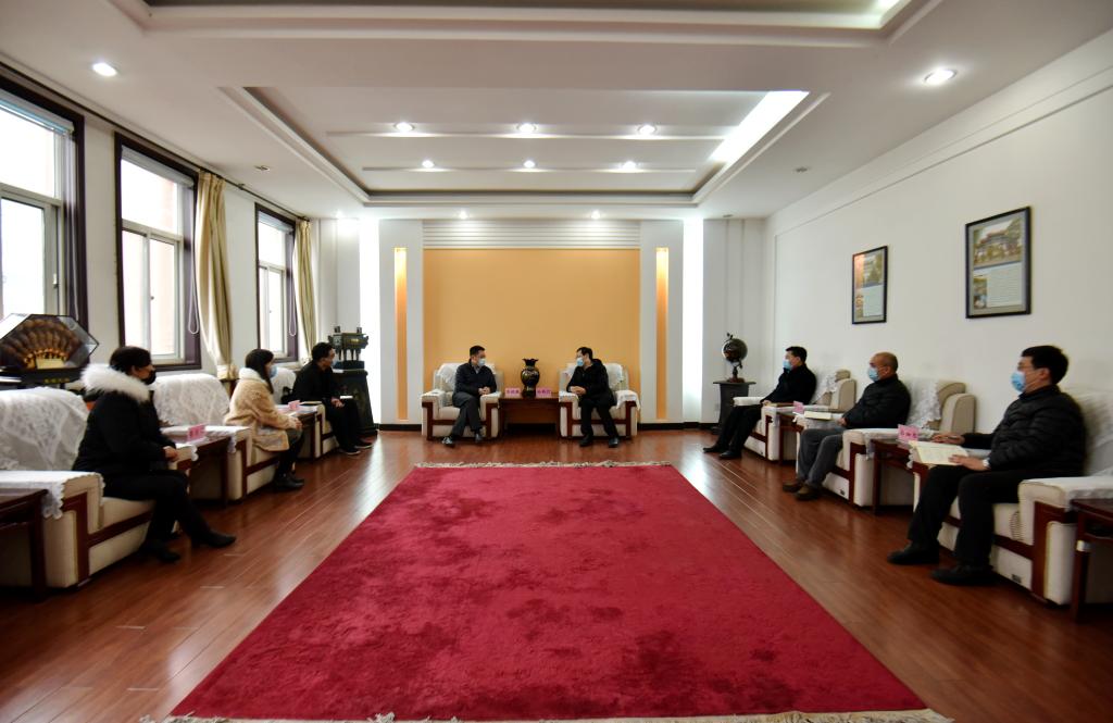 3月9日下午,济南市天桥区堤口路街道办事处党工委书记范晓琨一行到yl23455永利调研新冠肺炎疫情防控工作。副校长兼yl23455永利党工委书记、管委主任孙鹤汀会见范晓琨一行。
