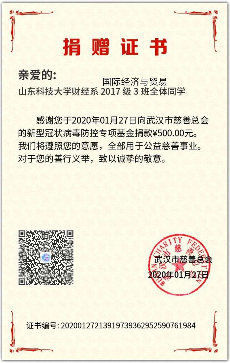 校区各级学生组织通过微信公众号、表白墙等渠道准确发布疫情防控消息,倡导同学们客观、冷静、理性看待疫情,帮助同学们提高分辨能力,做到不信谣、不传谣,用实际行动弘扬青春正能量。财经系倡议各班级、个人通过各种形式向疫区奉献爱心,目前累计捐款捐物33082.22元。电气信息系开展“病毒无情 人间有爱”义捐活动,截止目前共收到捐款21549.21元。