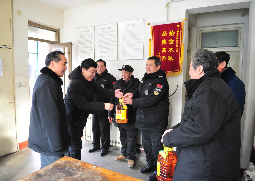 1月24日,新春佳节即将来临之际,校区领导邹积强、孙国强看望慰问节日期间坚守岗位的工作人员,向他们致以新春的问候和祝福。安全管理部、后勤管理部负责人参加慰问活动。