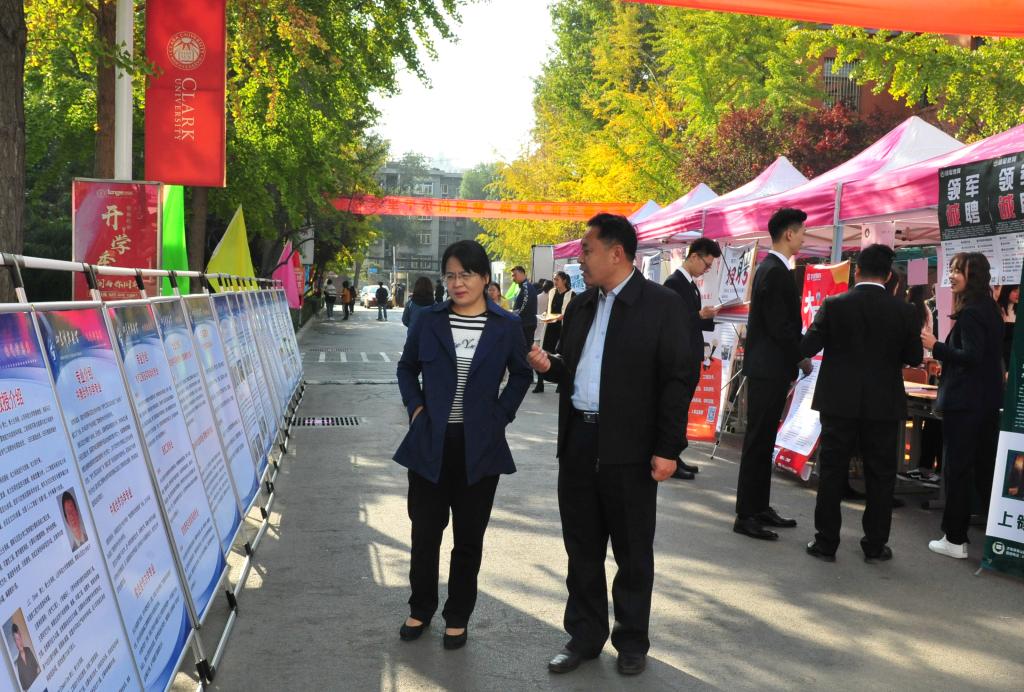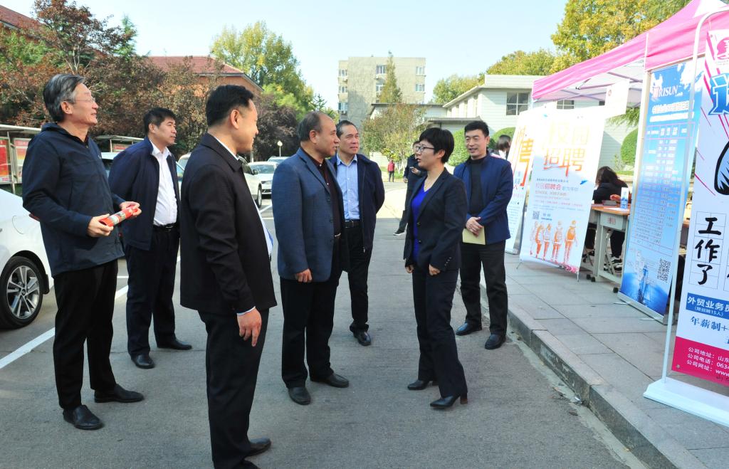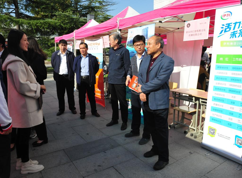 10月27日,yl23455永利在主楼广场举办2020届毕业生就业双选会。校区党委常务副书记高永军、天桥区公共与就业服务中心副主任赵凤香、校纪委副书记邹积强、管委会副主任方亨福以及相关部门负责人到现场指导,详细了解招聘会举办情况,与用人单位来宾及毕业生们进行深入交流。系部领导、学生就业创业导师、全体学生工作干部等到会场向毕业生提供应聘指导。
