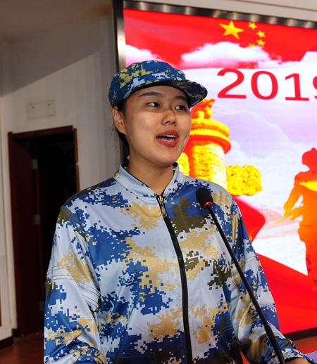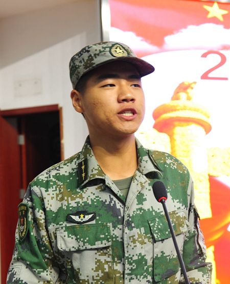 仪式在雄壮的国歌声中拉开帷幕。军训教官代表耿浩、学生代表王龙欣先后发言,分享了自己军训期间的感悟、体会及收获。
