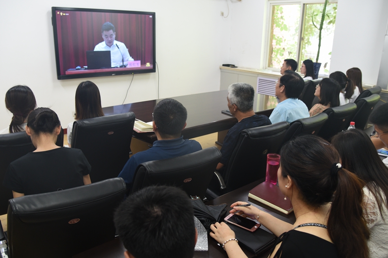 机关、后勤、离退休、公共课部党总支组织集中观看(摄影:云兵兵)