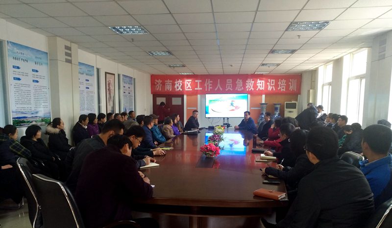 培训邀请了解放军960医院南院区急诊科主任吕东和医疗设备供应商山东航韦商务有限公司工程师韩彬分别对急救知识和AED除颤仪使用进行讲解。吕东从医学专业角度、用简洁诙谐语言、结合丰富生动案例、以PPT形式对当前国家急救工作状况、心肺复苏“叫叫C-A-B-D”流程、日常意外情况处置、“120”拨打注意事项等内容给予详尽解读;韩彬借助课件和设备,对“傻瓜型”AED除颤仪的使用进行现场演示操作。