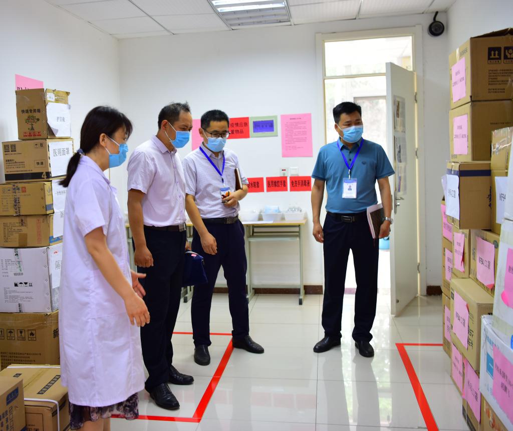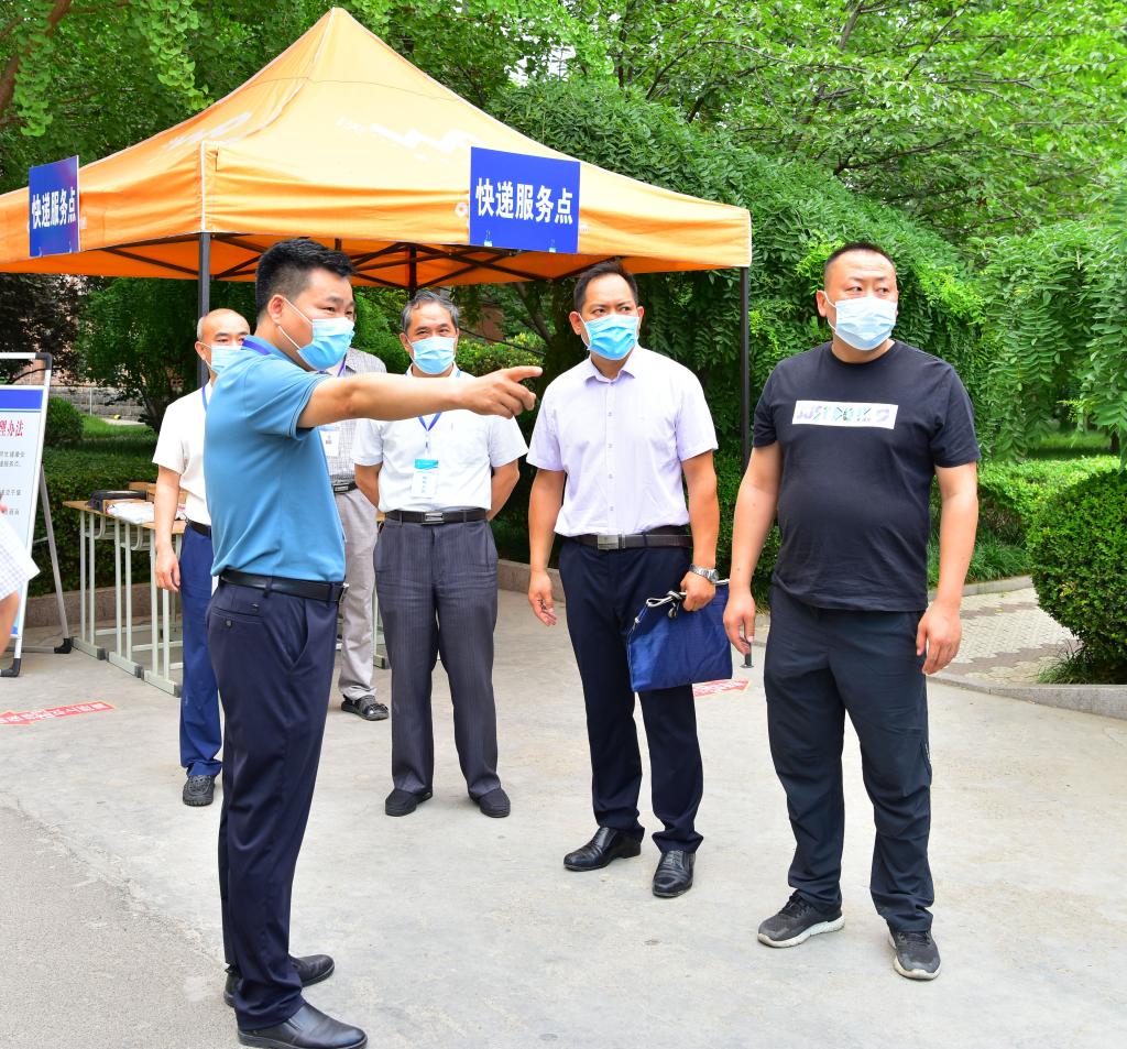 6月9日上午,天桥区疫情常态化防控工作督导组黎茂远、马超一行到yl23455永利开展督导检查。校区党工委副书记贾长响,校纪委副书记邹积强,校区管委副主任郭加书、孙国强陪同检查。