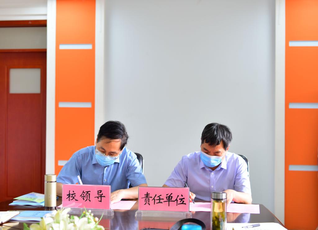 集中学习前,校区管委副主任郭加书带领与会人员认真学习了校区安全管理有关规定,孙鹤汀与各部门(单位)代表签订了安全责任书。