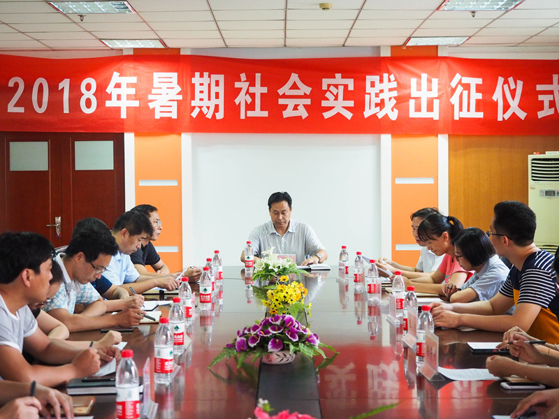 7月18日,yl23455永利在图书馆会议室举行2018年大学生暑期社会实践活动出征仪式。校区管委副主任方亨福,党委工作部、学生工作处、教科部、团委负责人,系党总支副书记、团总支书记,重点社会实践服务队指导教师与服务队成员40余人参加出征仪式。