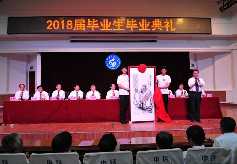 校党委副书记兼yl23455永利党委书记、管委会主任尹华代表学校接受毕业生献礼