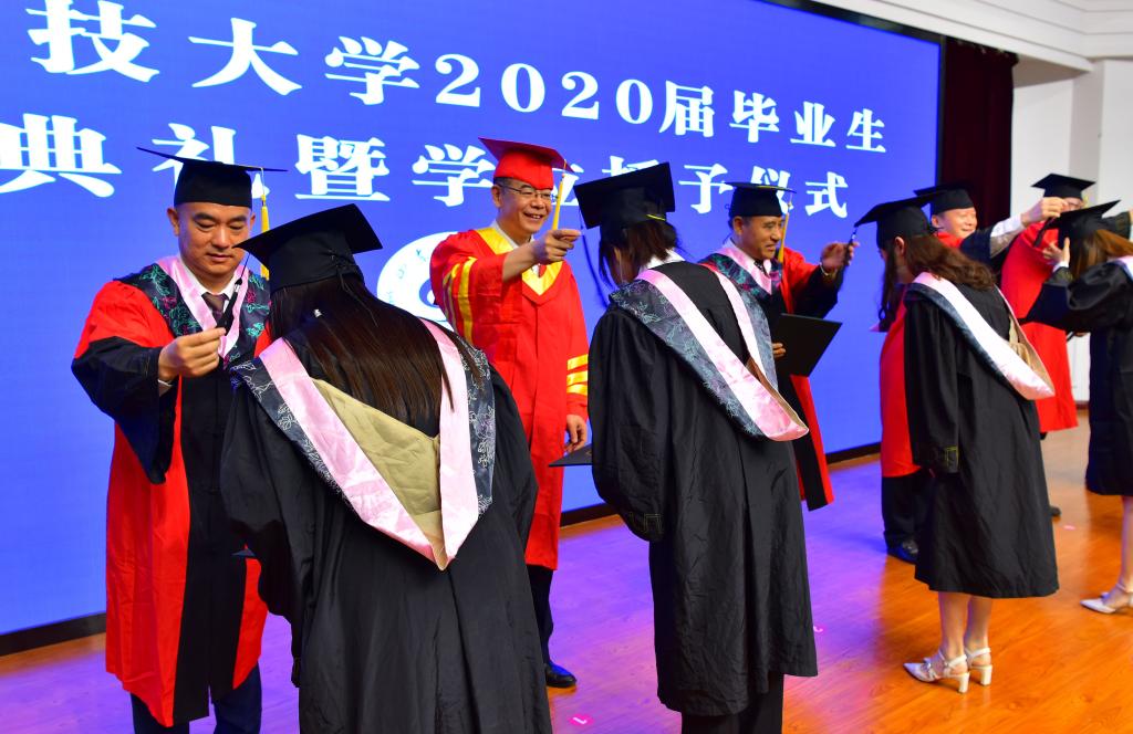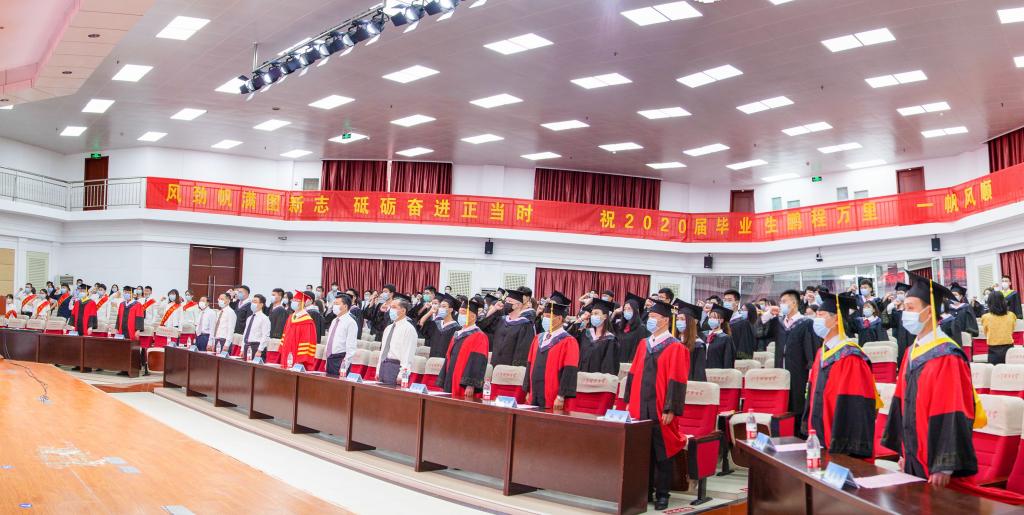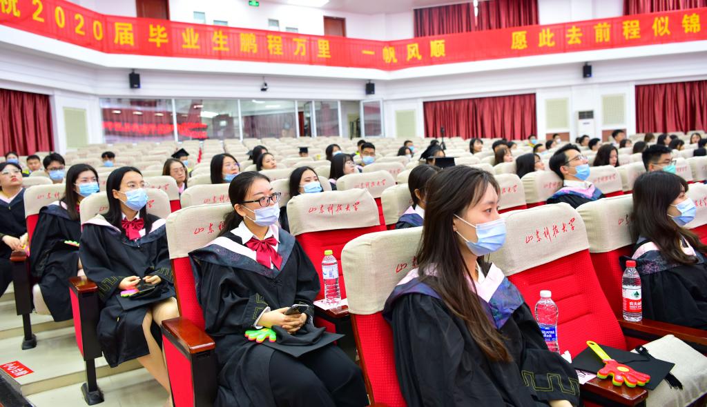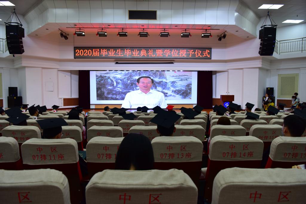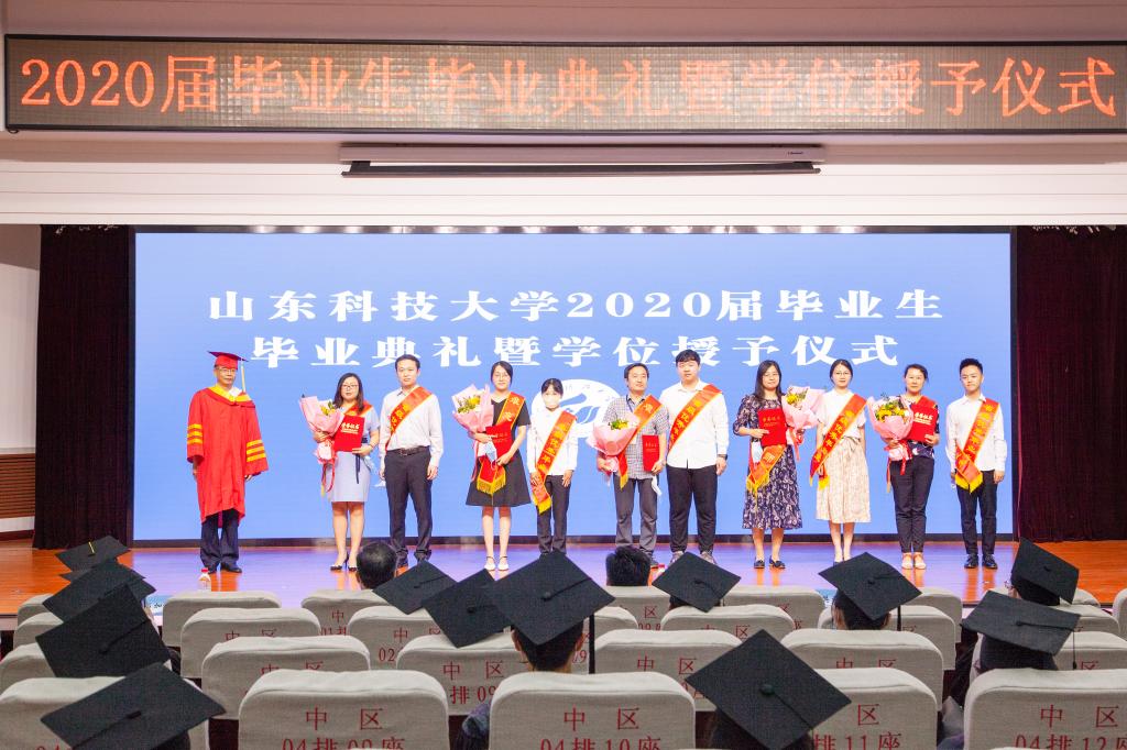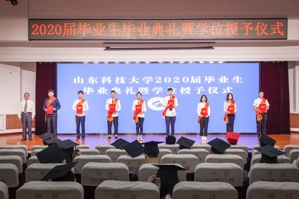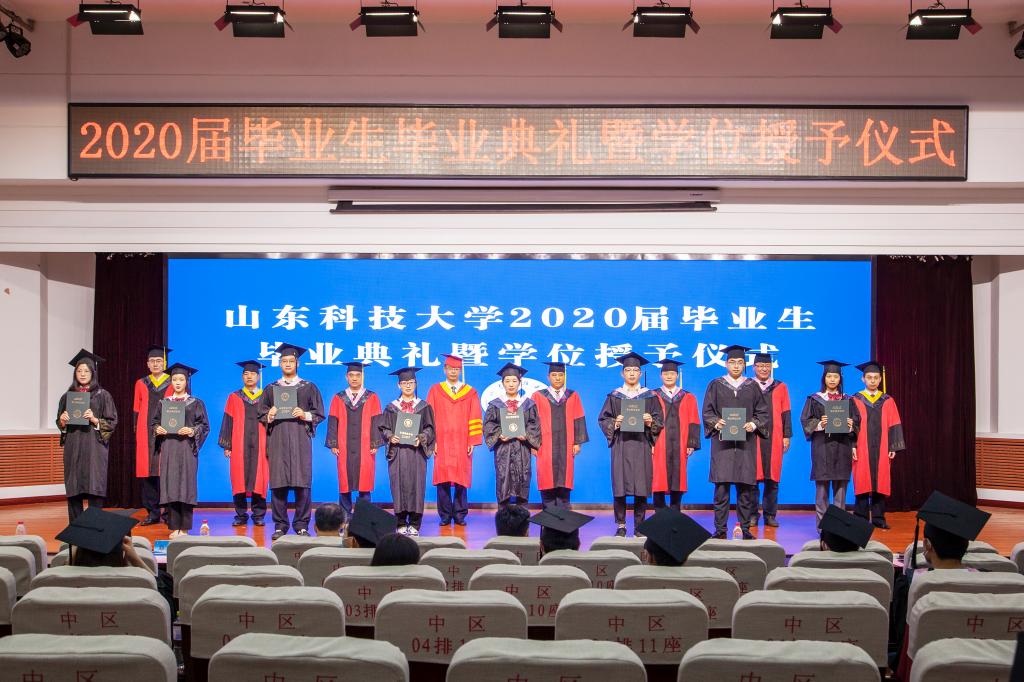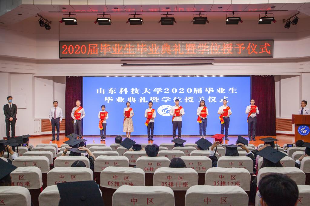 疫情挡不住收获的成果,战“疫”厚重了远行的步伐,不一样的毕业季,一样的祝福与期望。山东科技大学2020届毕业生毕业典礼暨学位授予仪式于6月24日隆重举行。校区党工委副书记贾长响,校纪委副书记邹积强,校区管委副主任郭加书、孙国强,校区学位评定分委员会委员,各教学单位负责人在校区分会场出席典礼。教师代表及毕业生代表参加了现场典礼,其余毕业生及家长参加了线上典礼。