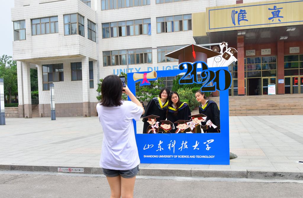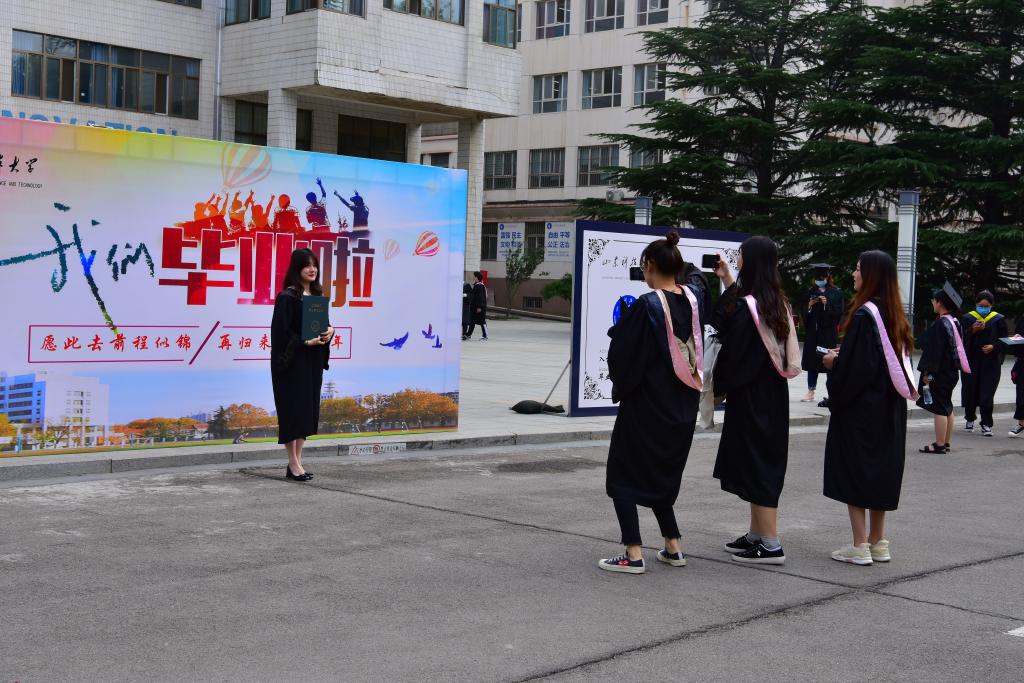 寓意锦绣未来的科大背景板,提醒毕业生常回家看看的毕业证背景板,萌味十足的卡通背景版……在学校专门设置的毕业照各处打卡点,毕业生们用镜头记录下一个个美好的瞬间,与恩师、同学纷纷合影留念,留下难忘的大学印记。