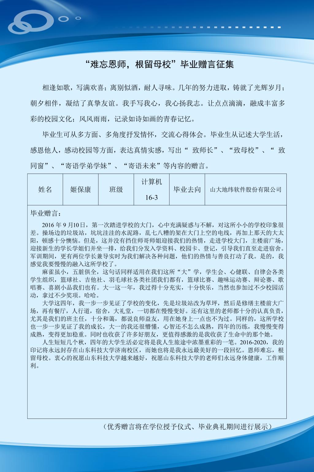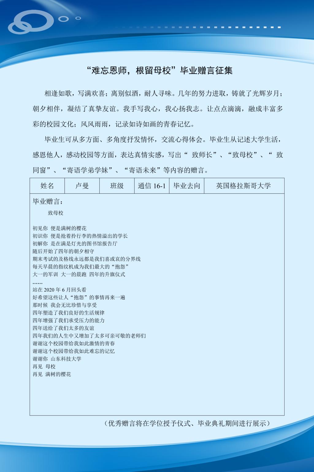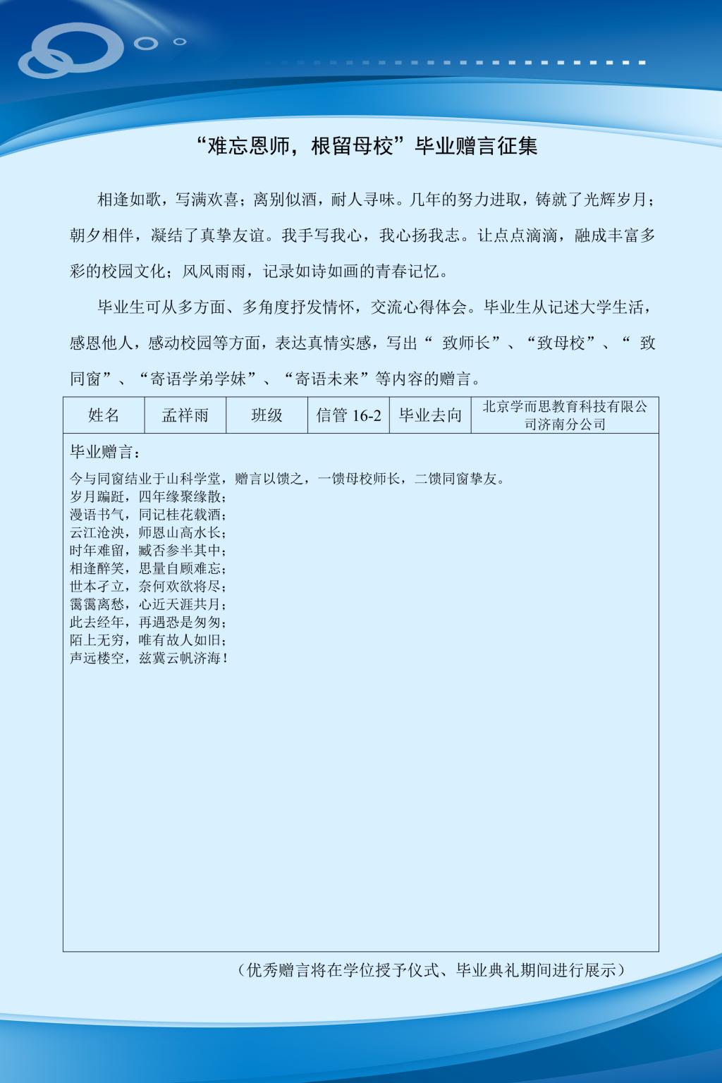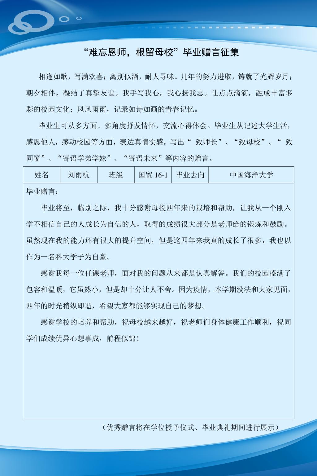 部分毕业赠言展示