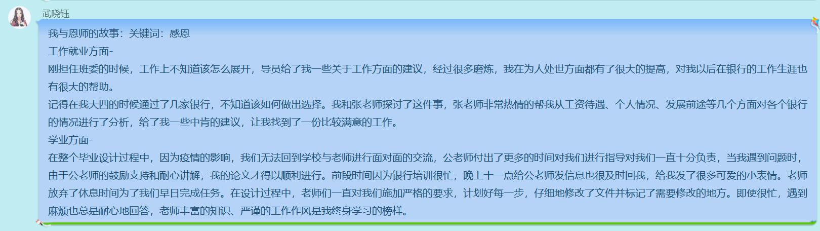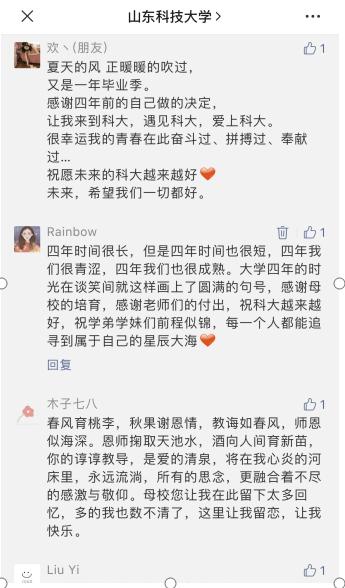 毕业生在学校微信公众号中表达对学校最真挚的感恩和不舍
