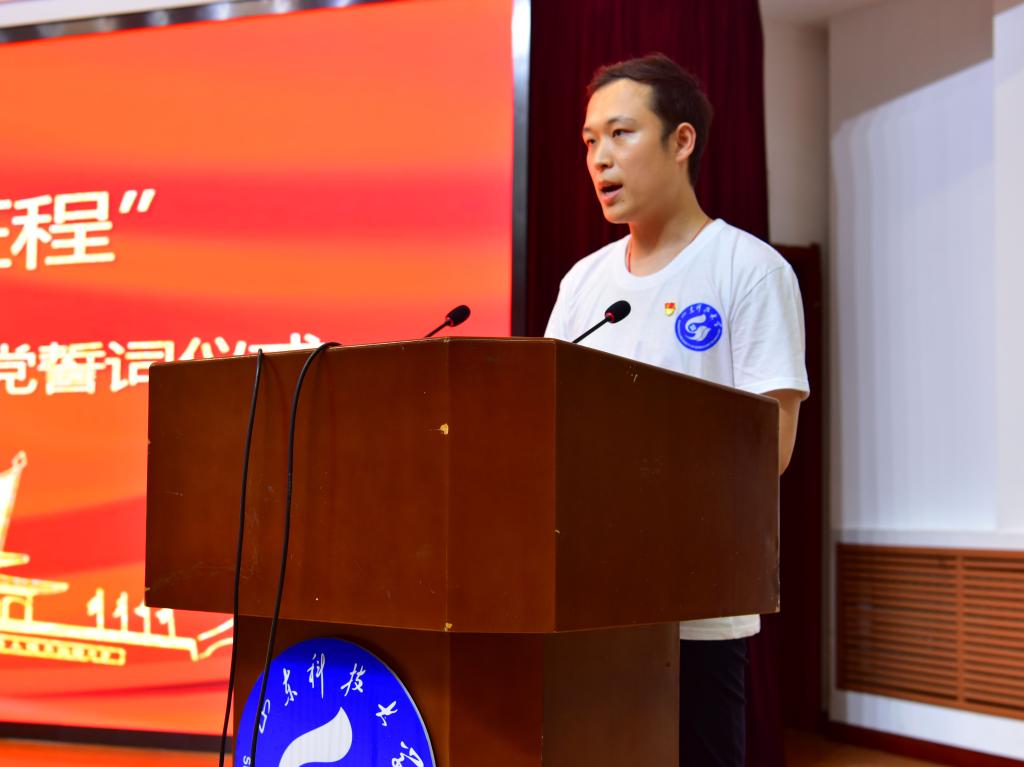 毕业生党员代表马晨钧发言,他代表全体毕业生党员衷心感谢党组织给予的关心和培养,感恩学校领导老师们的辛勤付出和培育,表示将心系母校,铭记师恩,时刻谨记党员身份,传承发扬科大精神,始终保持务实谦虚的作风,不忘初心,勇挑重任,努力为母校的发展贡献力量,为中国特色社会主义事业尽心竭力!