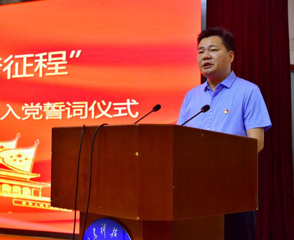 校区党工委副书记贾长响在讲话中指出,举行这次重温入党誓词仪式,既是对建党99周年的隆重纪念,也是对全体党员和入党积极分子一次深刻的党性教育,更是对即将踏上新征程的毕业生党员的庄严饯行。他代表校区党工委对广大毕业生党员提出殷切期望:一要坚定理想信念,永葆共产党人的政治本色。希望大家时刻牢记在党旗下的誓言,让理想信念的明灯永远在心中闪亮,不断增强“四个意识”、坚定“四个自信”、做到“两个维护”,把个人价值的实现融入到为党和人民的事业奋斗的新征程中去,无愧于党和国家的期望,无愧于人民的重托。二要自觉加强学习,不断增强为人民服务的本领。青年党员是学习型、创新型和服务型政党建设的新鲜力量,要在广阔天地中、岗位工作中坚持学习,把学习作为一种责任、一种精神追求、一种生活方式,依靠学习这把“金钥匙”,积蓄远航的动力,增长为人民服务的本领,在实现中华民族伟大复兴的中国梦中贡献青春、才华和力量,让党员旗帜、青春之光闪耀在强国之路上。三要坚守初心使命,争做新时代干事创业的先锋模范。青年党员是青年中的优秀代表,是必将大有可为,也必将大有作为的后浪,肩负着时代赋予的重任。要时刻牢记使命与初心,敢于拼搏,勇于奉献,主动到条件艰苦的一线去,在艰难困苦中磨炼意志,干事创业,充分发挥优秀党员的先锋模范作用,争做走在时代前面的奋进者、开拓者、奉献者。