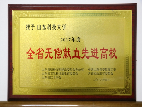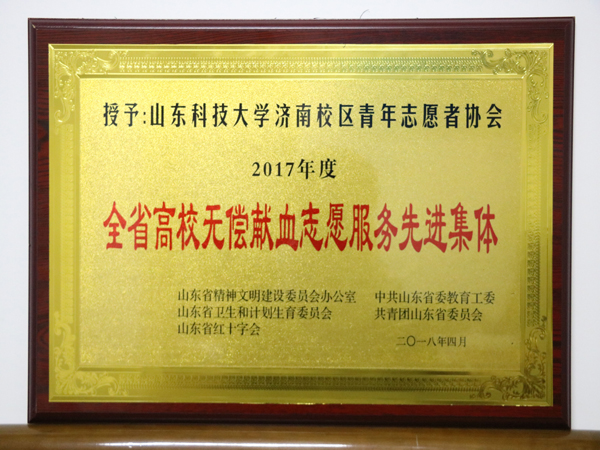 根据鲁教工委〔2018〕5 号文件,山东科技大学荣获“全省无偿献血先进高校”,yl23455永利青协荣获“全省高校无偿献血志愿服务先进集体”,赵长青等5人被评为“全省无偿献血工作先进个人”,吕晓恬等5名学生被评为“全省无偿献血服务先进个人”。