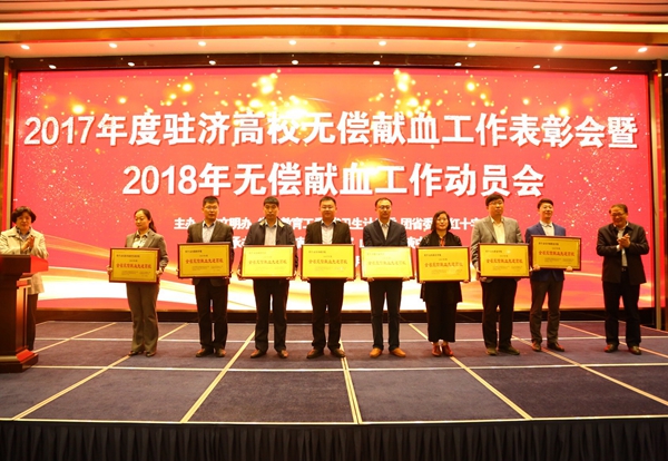 会议通报了2017年度驻济高校无偿献血工作情况及工作建议,宣读了《关于表彰2017年度全省高校无偿献血工作先进集体和先进个人的决定》,6所高校作了典型发言。省委教育工委副巡视员刘欣堂、省卫生计生委副主任马立新分别讲话,充分肯定高校在建设“健康山东”、“平安山东”,推动无偿献血事业发展,保障人民群众健康权益方面发挥的重要作用,表达了对高校和大学生积极参加无偿献血的崇高敬意,对高校无偿献血下一步工作提出要求。