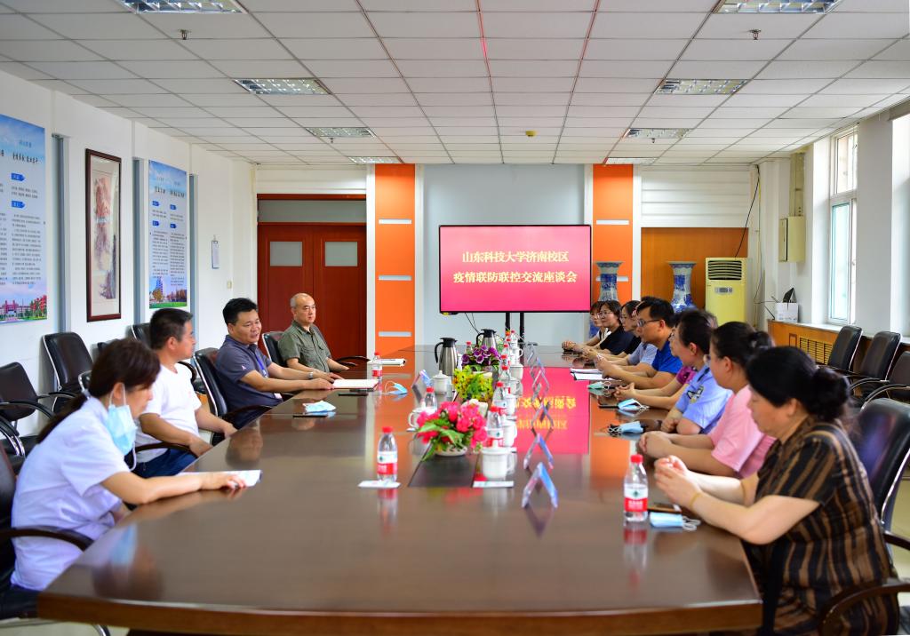 为进一步强化疫情联防联控工作机制,8月25日下午,yl23455永利党工委副书记贾长响在图书馆会议室主持召开疫情联防联控工作交流座谈会,与联防联控部门单位就全面做好校区秋冬季新冠肺炎疫情防控工作进行座谈交流。济南市天桥区教体局、天桥区疾控中心、堤口路街道办事处、堤口路派出所、矿院路社区以及山东省立第三医院等单位相关负责人参加了座谈。