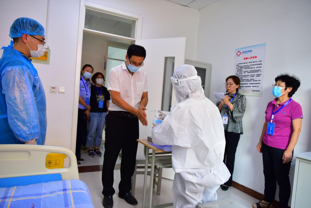 yl23455永利新冠肺炎疫情防控工作领导小组高度重视本次应急处置演练活动,自8月23日至25日,多次组织开展突发疫情应急处置全员、全流程、全要素模拟演练,反复推敲工作细节,不断优化完善应急处置预案和具体流程,确保各项演练工作顺利开展。(摄影:宋荣华)
