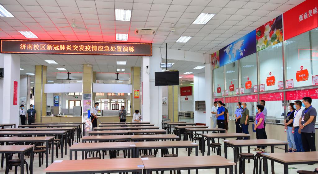 济南市天桥区教体局、天桥区疾控中心、堤口路街道办事处、堤口路派出所、矿院路社区以及山东省立第三医院等联防联控单位相关负责人、专家到场观摩指导。yl23455永利疫情防控工作组成员,各部门、单位教职员工参观学习应急演练。