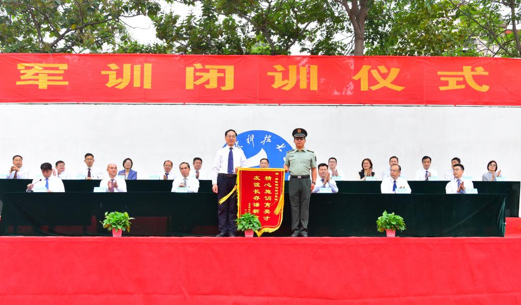 校区管委副主任郭加书宣读了军训表彰决定。与会领导先后向“优秀军训单位”、“优秀教官”、“优秀教导员”、“优秀连队”和“优秀学员”等先进单位和个人代表颁发奖状、证书。