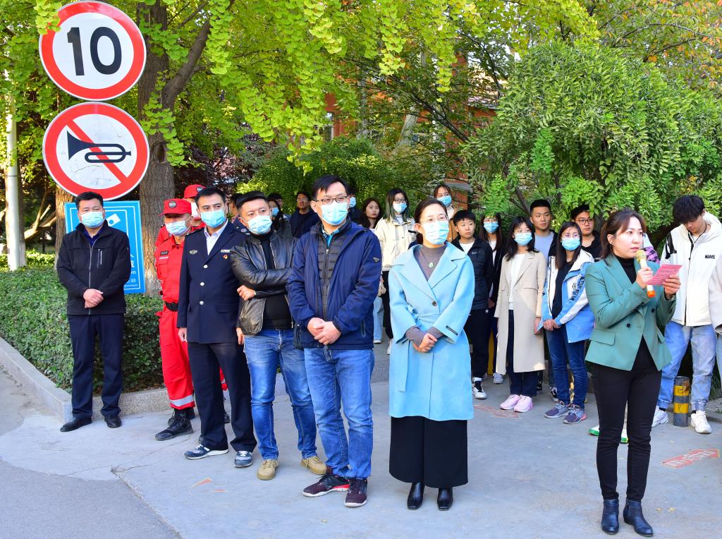 为切实做好秋冬季新冠肺炎疫情常态化防控工作,进一步检验应急处置突发新冠肺炎疫情的实战能力,10月23日下午,yl23455永利组织开展新冠肺炎常态化疫情防控应急处置演练。济南市天桥区教体局、堤口路街道办事处、堤口路派出所、矿院路社区等联防联控单位相关负责人到场观摩指导,学生工作干部、教职员工和学生代表参加应急演练。