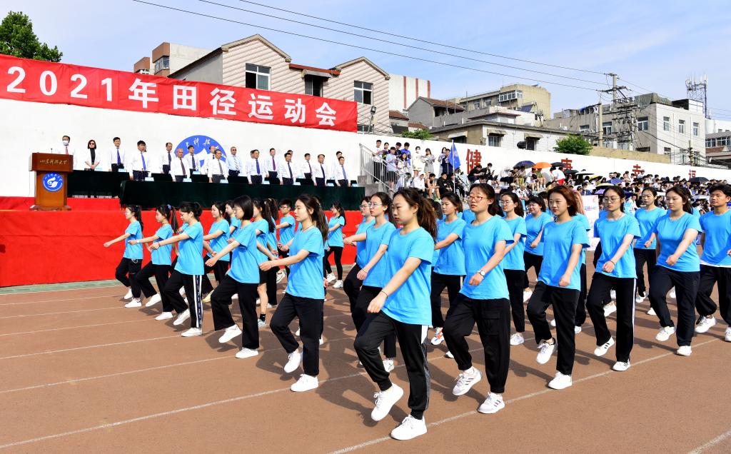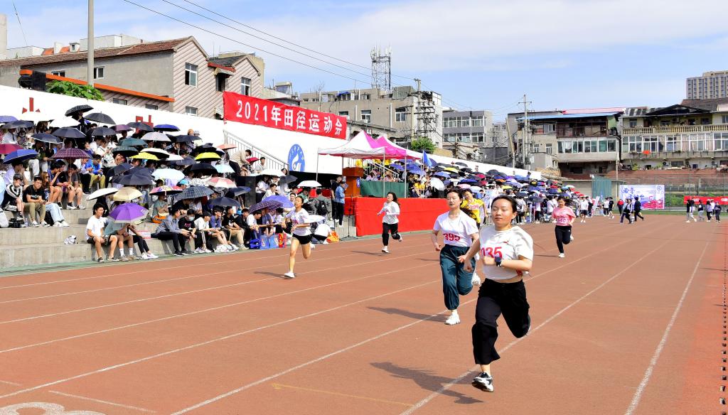 本次运动会设比赛项目35个,共有校区57个班级的580余名学生运动员和4个分工会的200余名教工运动员参加。(摄影:孙雪琳 刘俊)