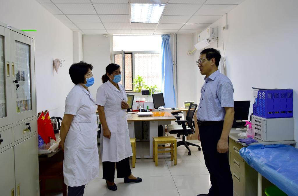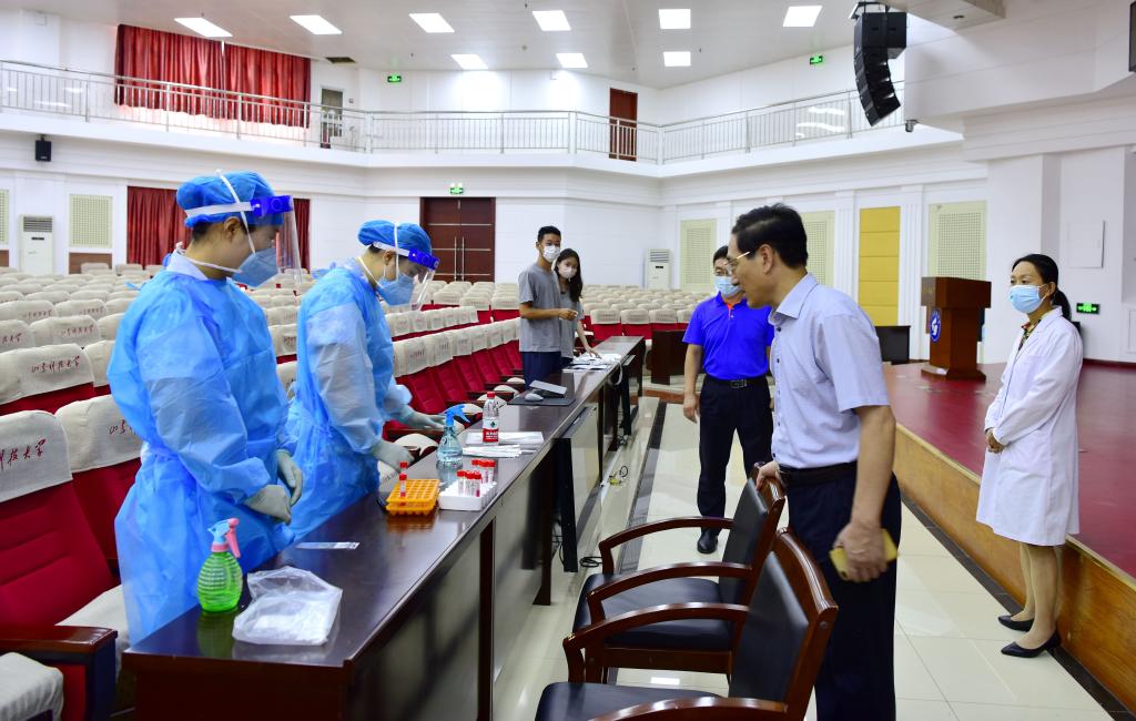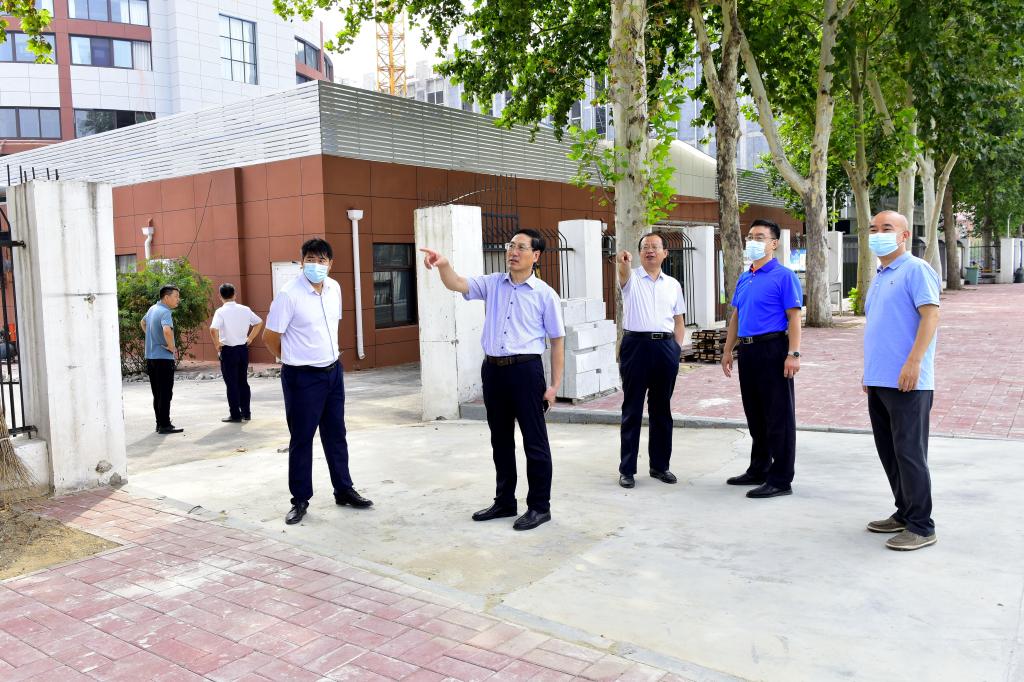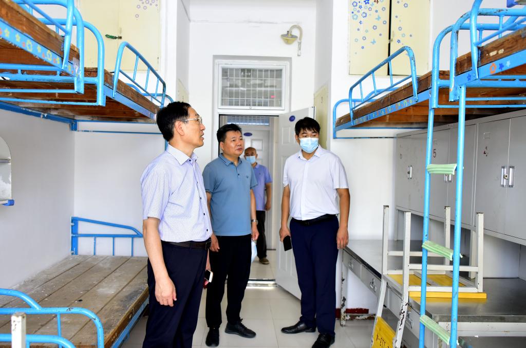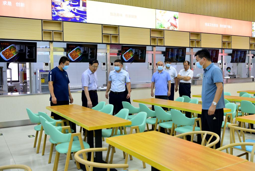 孙鹤汀一行先后实地查看了校区大门口、医务室、学生返校核验通道、临时留观点、核酸检测点、餐厅、操场、学生宿舍、艺体楼施工现场、教学楼、办公楼等重点区域、关键部位。每到一处,孙鹤汀都与工作人员亲切交谈,详细了解新学期各项工作准备、疫情防控工作落实和校园维修改造建设项目进展等情况,对统筹做好各项工作提出要求。