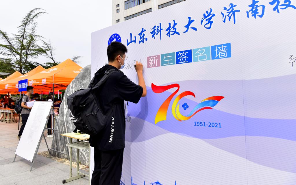 斯威本学院工业设计专业2021级新生韩翔宇说:“恰逢学校70周年校庆入学对我们来说意义非凡,第一天来到学校就感受到领导老师和学长们扑面而来的热情,希望在科大收获更好的自己!”