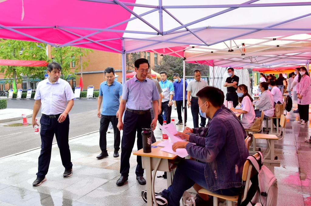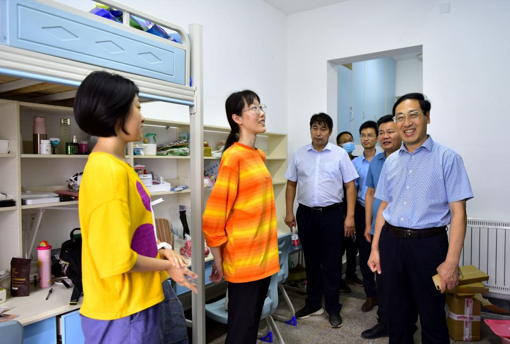 孙鹤汀与校区领导到迎新现场和学生宿舍慰问工作人员、志愿者和新生