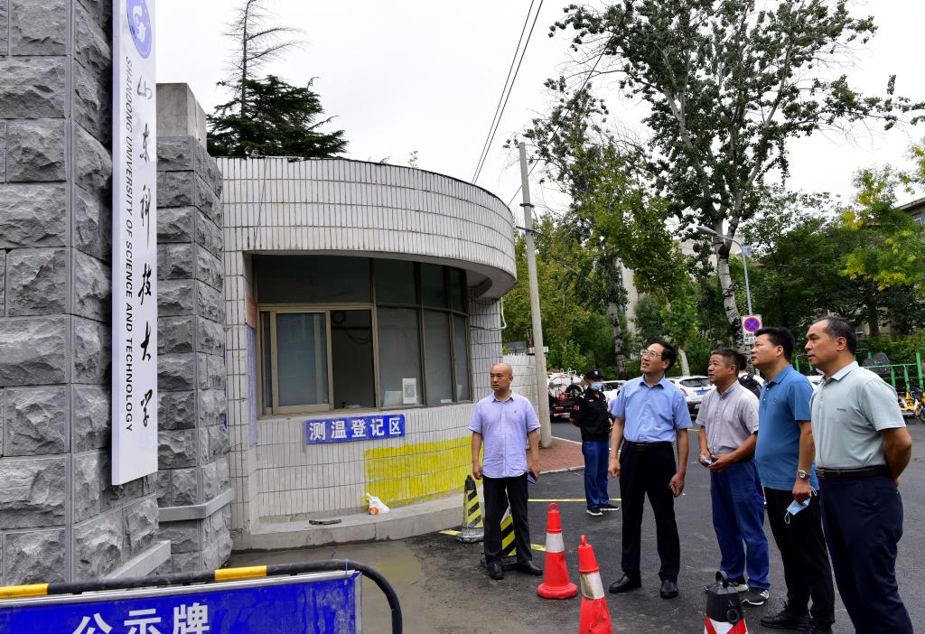 在校区门口检查工作