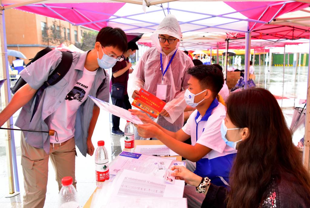 志愿者为新生办理报到手续