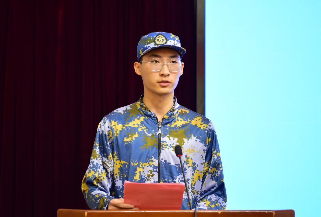 军训教官代表衣铖曜发言
