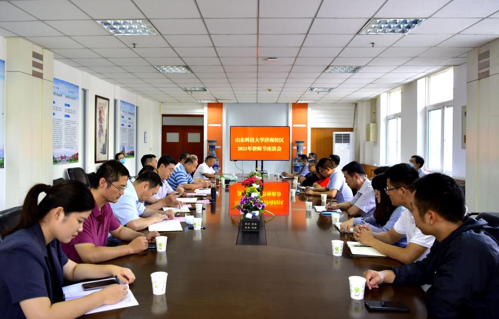 金风送欢笑,丹桂花香飘。9月10日,yl23455永利在图书馆会议室举行教师节座谈会。校区党委副书记贾长响,校纪委副书记邹积强,校区管委副主任樊铭渠、孙国强,工会、教学科研部负责人,获奖教职工代表、退休教师代表、新进教师代表等参加了座谈会。座谈会由樊铭渠主持。