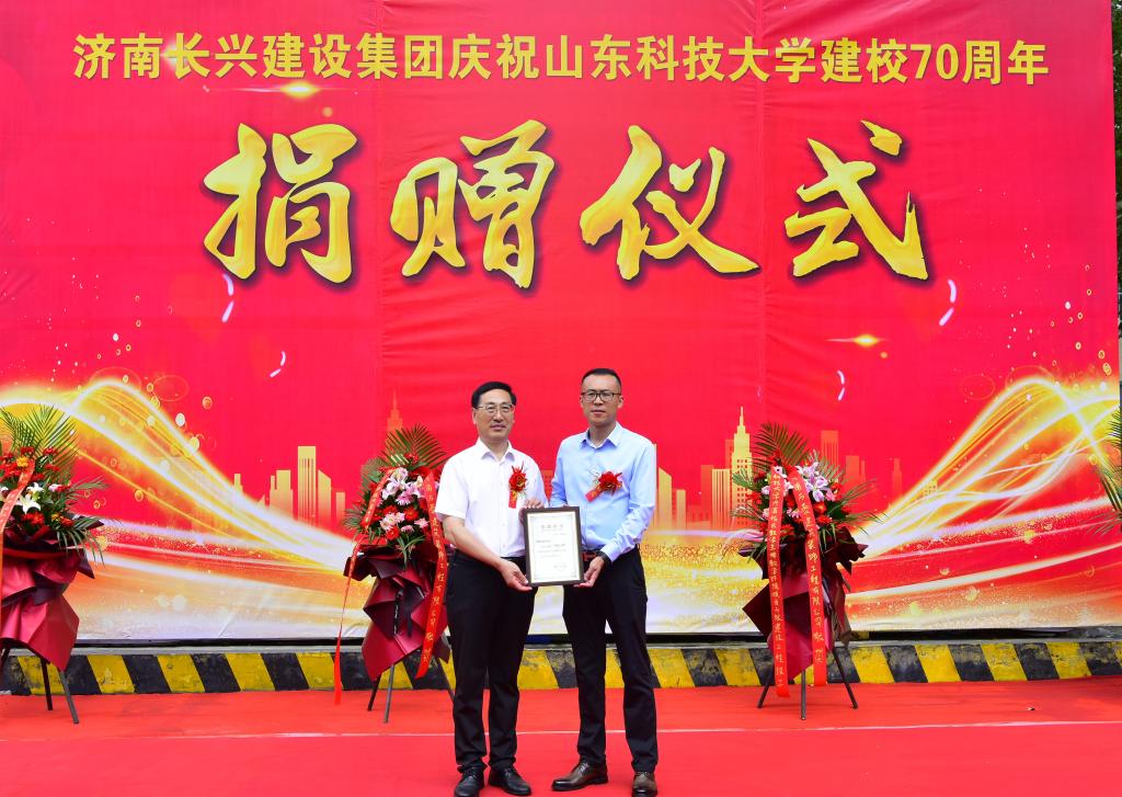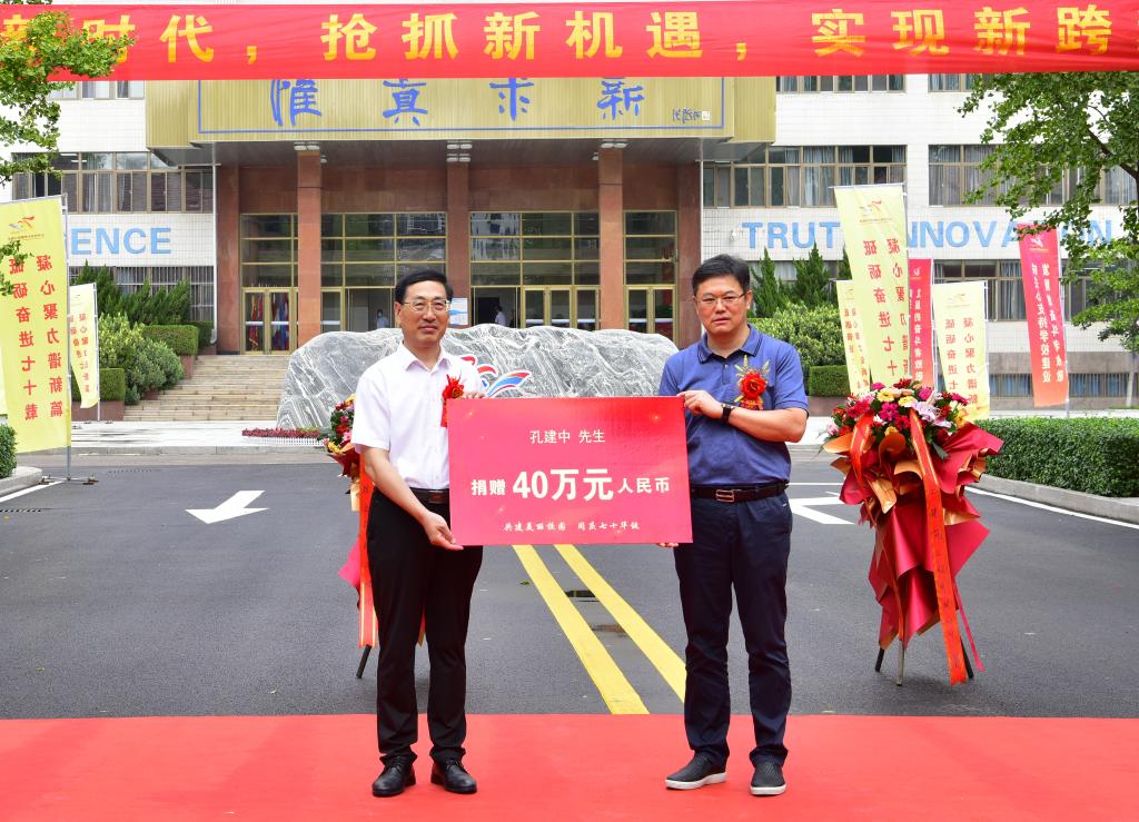 孙鹤汀代表学校接受捐赠并颁发致谢牌。