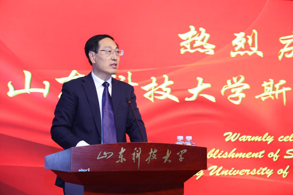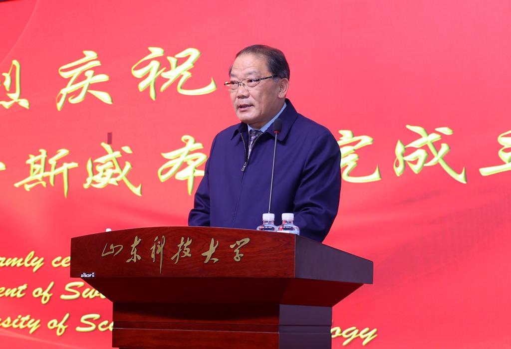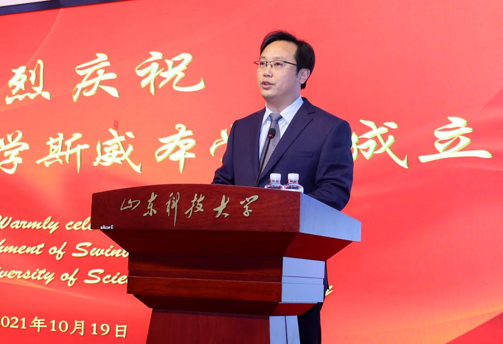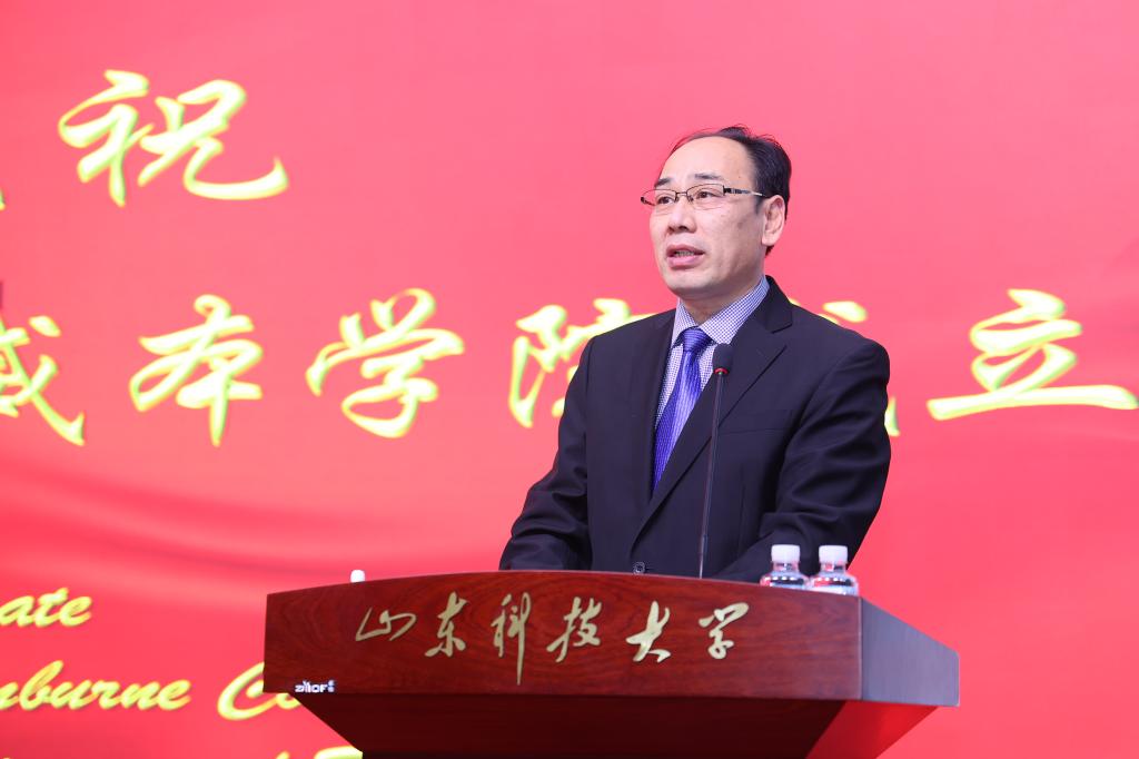 王夫海宣读《教育部关于同意设立山东科技大学斯威本学院的函》