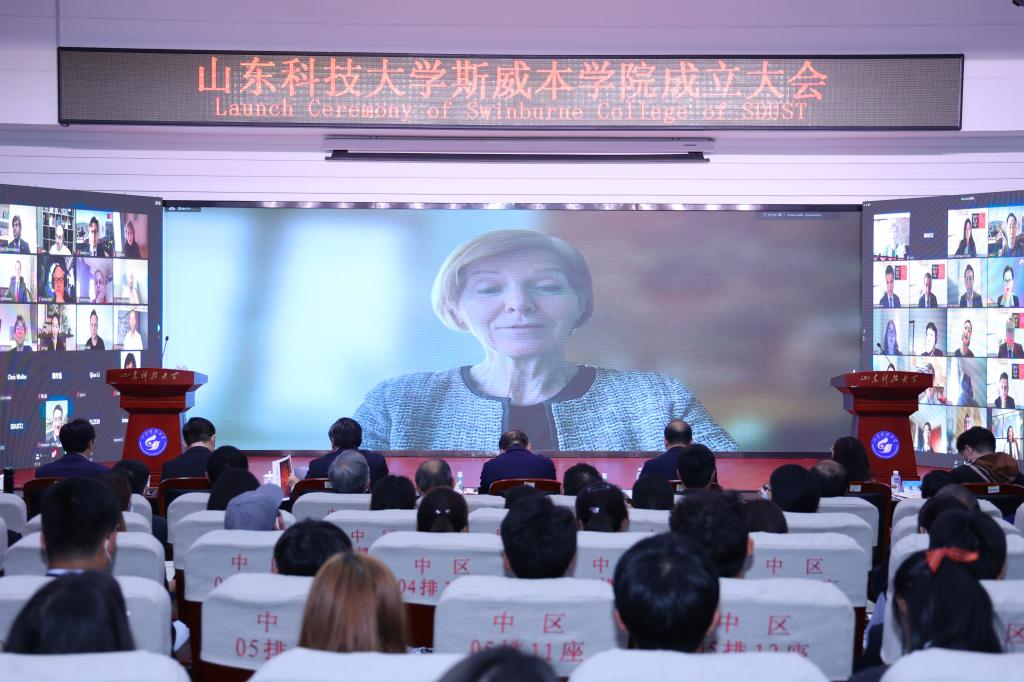 Pascale Quester在致辞中表示,斯威本科技大学与山东科技大学具有诸多共性,新成立的斯威本学院标志着双方在合作道路上又向前迈进了一步。斯威本科技大学将携手山东科技大学推动学院开展高质量的研究和教学工作。Pascale Quester对斯威本学院首批2021级新生寄予厚望,希望同学们能够在山东科技大学和斯威本科技大学汲取营养、获得成长,利用在斯威本学院学到的知识和技能为社会发展做出贡献。