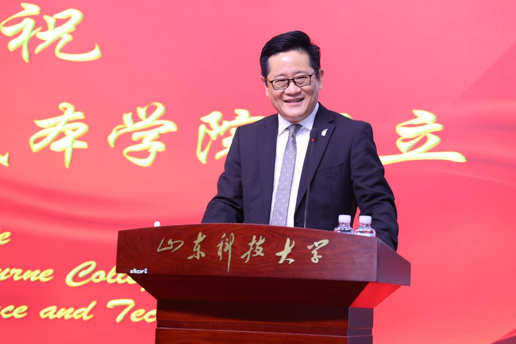 姚庆国表示,山东科技大学与斯威本科技大学有着深厚的合作基础,在学生交流、师资互访、联合科研等方面开展了长期的合作。斯威本学院是两校实现强强联合、优势互补,传承历史友谊、深化务实合作的重要成果,也是两校承担教育交流使命、回应时代要求的积极行动。他在致辞中强调,斯威本学院是我校获批的首个中外合作办学机构,标志着学校国际合作办学迈上了一个新台阶。学校将统筹协调各方资源,更大力度引进、吸收和融合国外优质教育资源,把斯威本学院打造成高等教育改革和高素质创新型国际人才培养基地、高水平国际协作的科技创新基地、区域发展的社会服务基地。