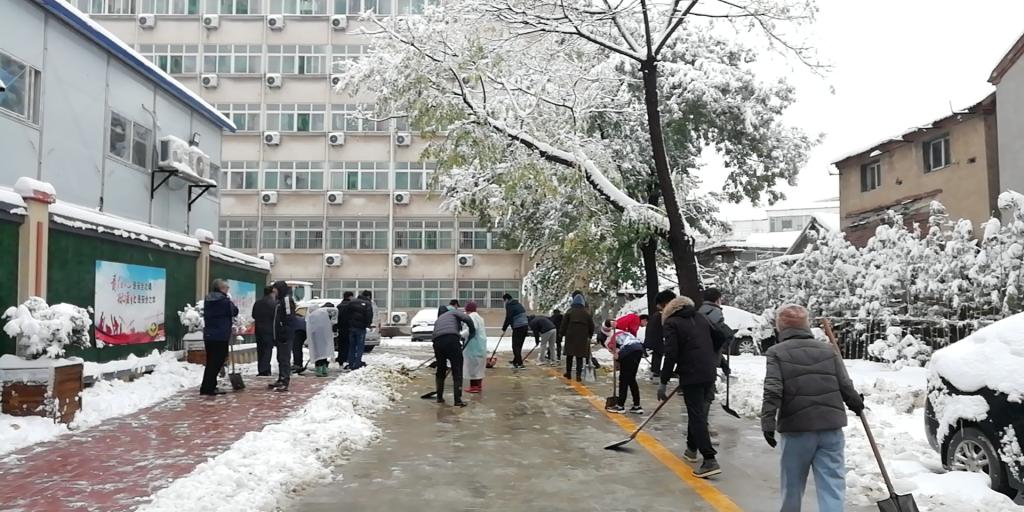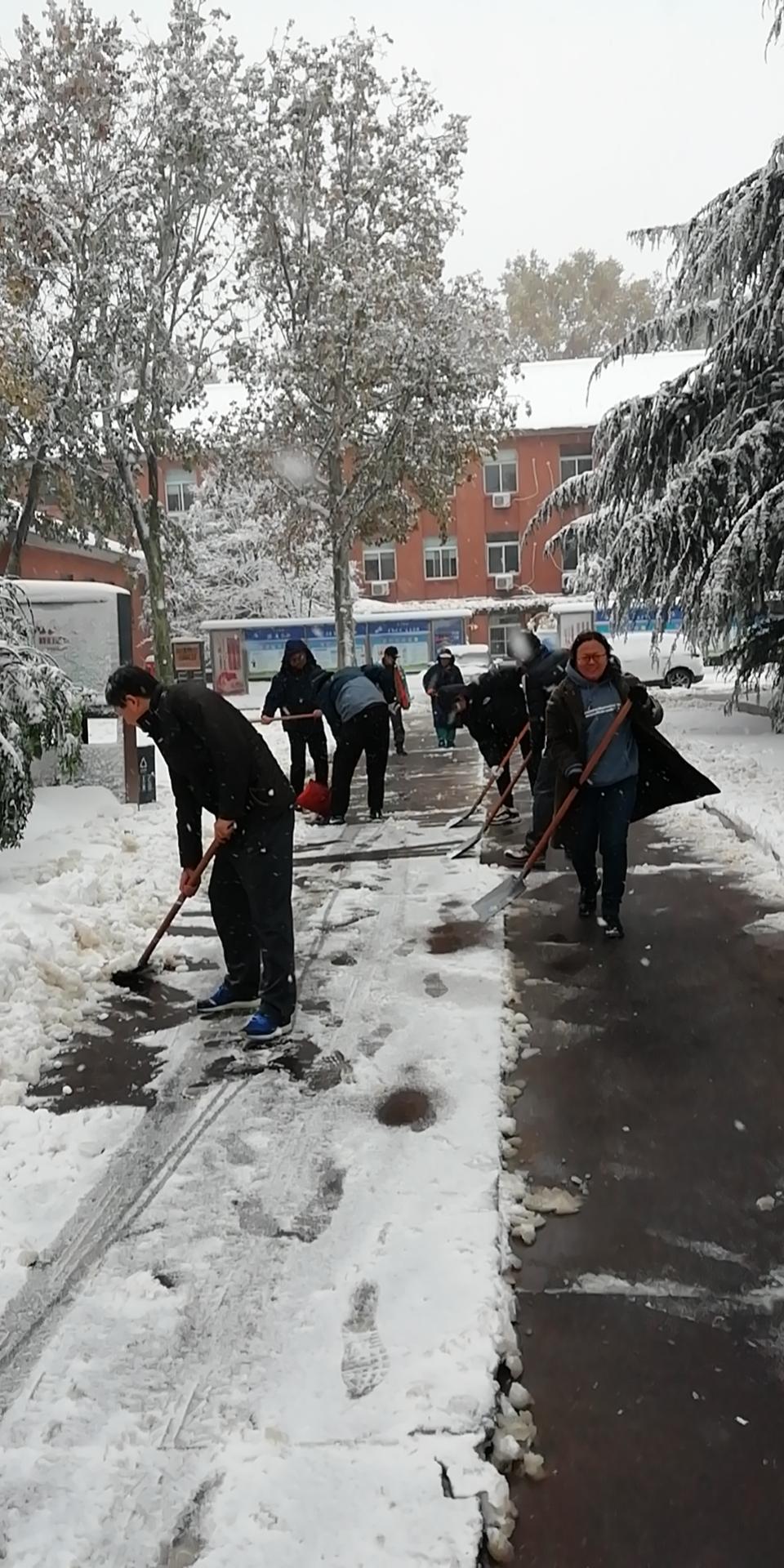 11月7日,济南市迎来今冬初雪。因降雪量较大,有些地方积雪厚度达到20厘米。为避免雪后结冰,保障师生通行安全,校区师生员工积极响应号召,纷纷参加到清除积雪的志愿活动中。