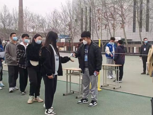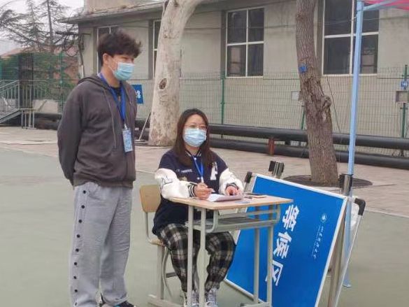 为确保各项防控工作的有序开展,yl23455永利广泛动员各部门各单位所有力量,迅速组成一支由56名教职员工和401名学生组成的疫情防控志愿者队伍。自3月12日校区进行全员核酸检测和每日核酸抽检以来,志愿者们经过培训迅即投入到各个岗位中。在核酸检测现场,志愿者们分工合作,协助医护人员进行信息登记、体温测量、流程指引、人员疏导等工作,确保每天核酸检测工作有条不紊。此外,志愿者们还积极参与到防外卖进校园督查、餐厅就餐秩序维护、为宿舍隔离同学送饭等工作中,哪里有需要哪里就会有志愿者们忙碌的身影。