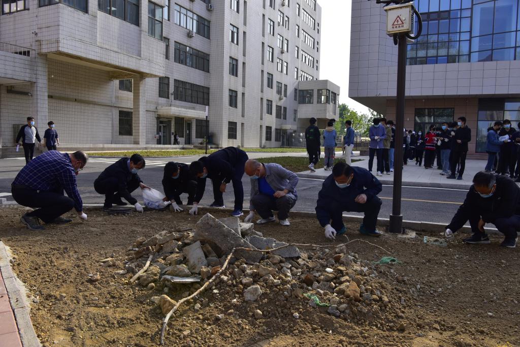 由于疫情原因校园实行封闭管理,校区准备绿化的休读园因此未能完工。为加强学生劳动教育,丰富学生业余生活,增进师生交流,校区组织全体驻校处科级干部、学生辅导员同广大学生一起动手,并肩劳动,共同清理休读园土地里的石子、瓦砾、砖块,平整土地,为疫情过后种植草坪做好充分准备。
