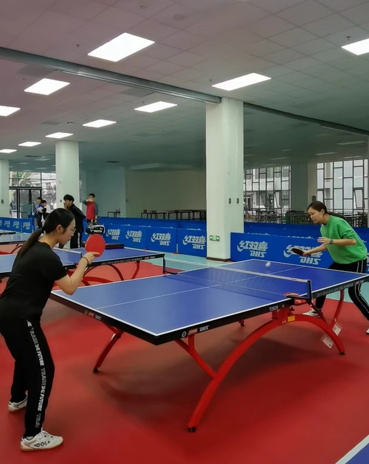 为了给学生提供足够的运动空间,面向全体学生开放艺体楼乒乓球、羽毛球场地,学生在运动场上尽情挥洒汗水,发展兴趣爱好,锻炼身体素质。“在专业的场地上运动感觉超赞,有时候还能和老师切磋球艺”,一名大二乒乓球爱好者坚持每天锻炼。