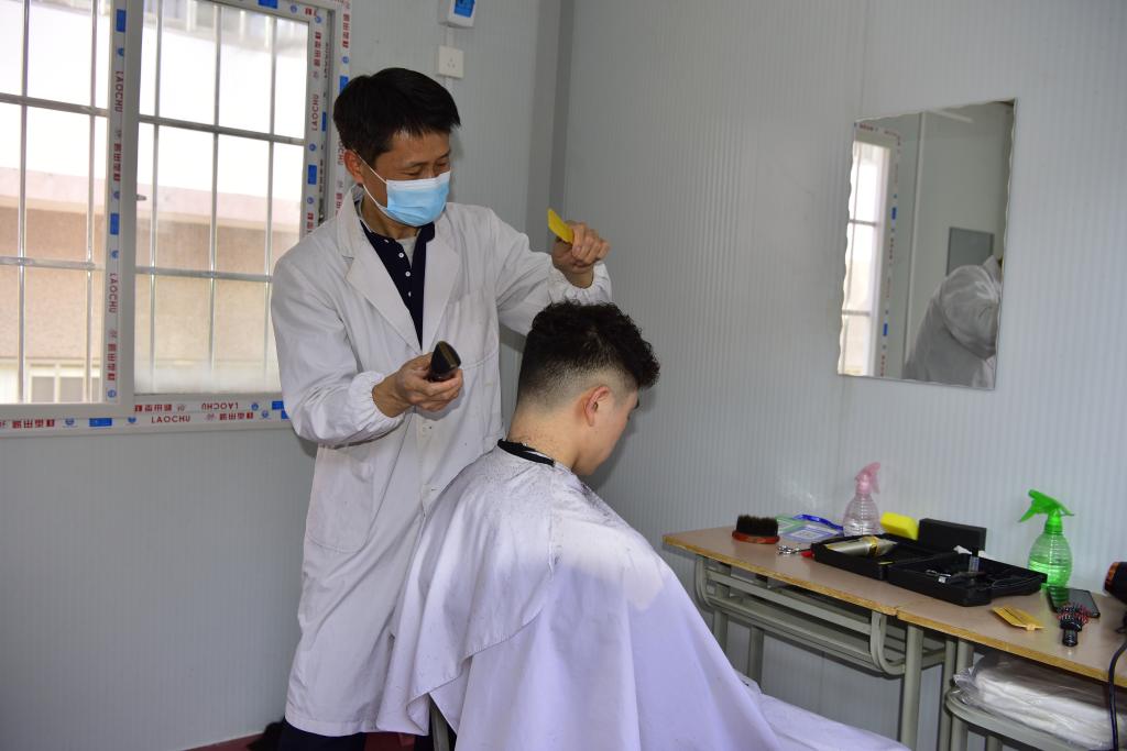 学团工作部积极开展心理咨询、聘请专业心理医生为学生心理辅导;为全体学生发放爱心苹果、赠送手机流量。专门设立理发小屋,安排理发师为有需要的师生集中理发, “我头发长的特别快,封校前就该理发了,因为功课紧没来得及,头发天天乱糟糟得很心烦,今天终于能理发了,非常开心!”