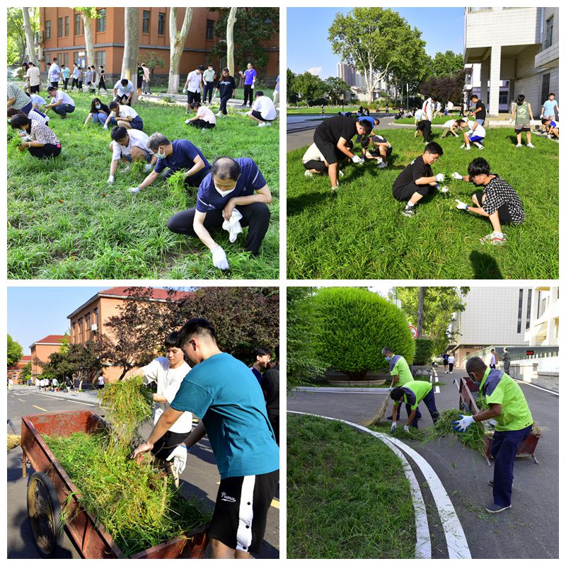 经过一个雨水充沛的假期,校园里草木葱茏。为加强学生劳动教育、美化校园环境、提高学生热爱校园的热情,增进师生交流,校区组织广大教职工和学生一起动手清除草坪杂草。大家撸起袖子、弯下身子,分工合作、埋头苦干,经过师生共同劳动,杂草尽除,草坪重新焕发着生机与活力。