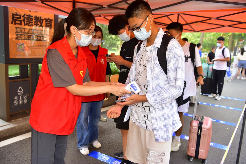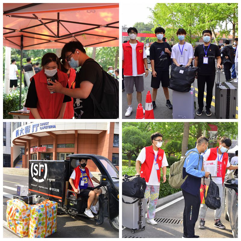 迎新志愿者一如既往是迎新季的靓丽风景线,他们化身疫情防控测温验码员、家长车辆疏导员、行李运输驾驶员、报到注册员、校园生活指导员…… 忙碌的身影穿梭在迎新现场。“一对一,点对点”的贴心服务为新生留下美好难忘的入学印象,“红马甲”“蓝马甲”,闪亮的党徽、团徽,生动诠释了传帮带的优良传统和志愿精神。