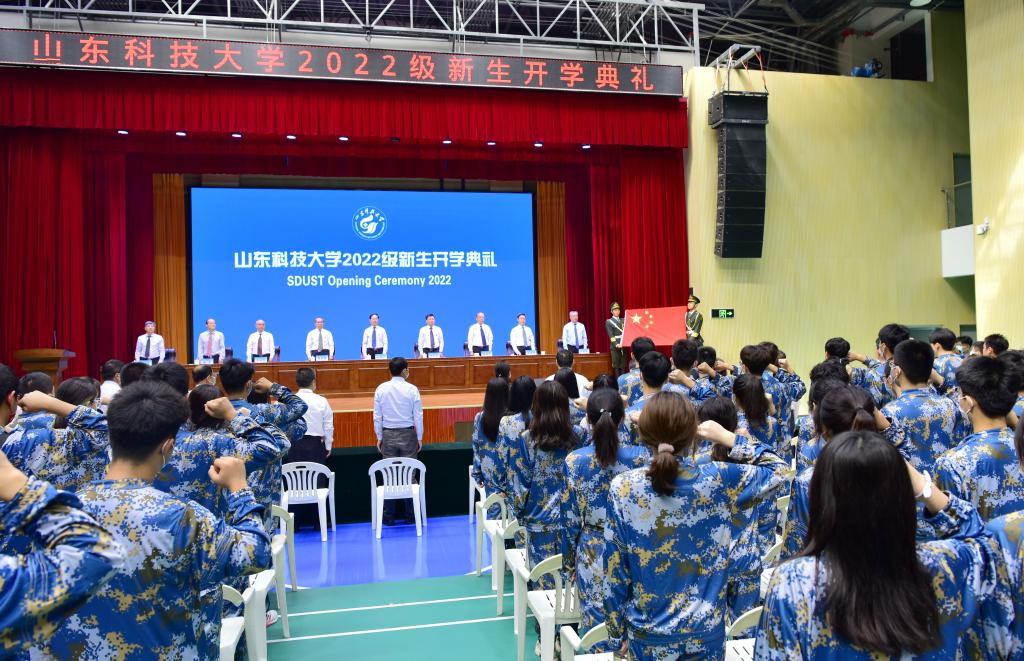 典礼在雄壮的国歌声中拉开帷幕。孙鹤汀以“惟真求新 笃行致远 做融通中外德才兼备的新时代大学生”为题发表了热情洋溢的讲话,他代表全校师生员工热烈欢迎2022级新生加入山东科技大学大家庭,由衷赞美他们在常态化疫情防控中历练出的乐观坚强和胸怀格局。