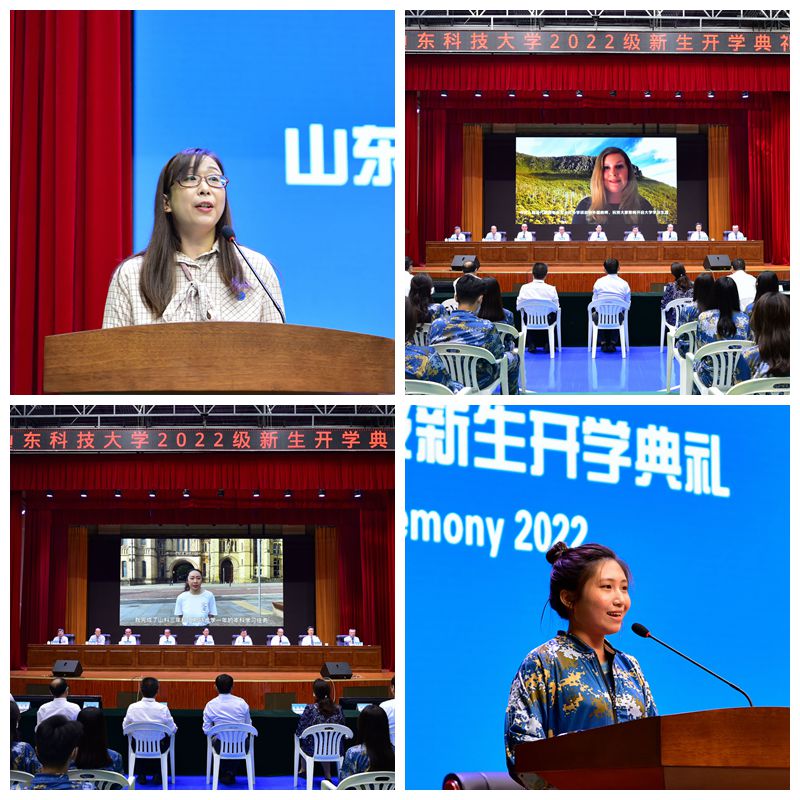 教师代表吕濯缨、外籍教师代表Sarah Ryden、校友代表张心然在典礼上发言,表达了对新生开启新征程的祝福,分享了如何规划大学学习生涯的感悟。新生代表工业设计2022级一班的陈俊局表达了融入科大新发展的喜悦和展示科大新气象的决心。