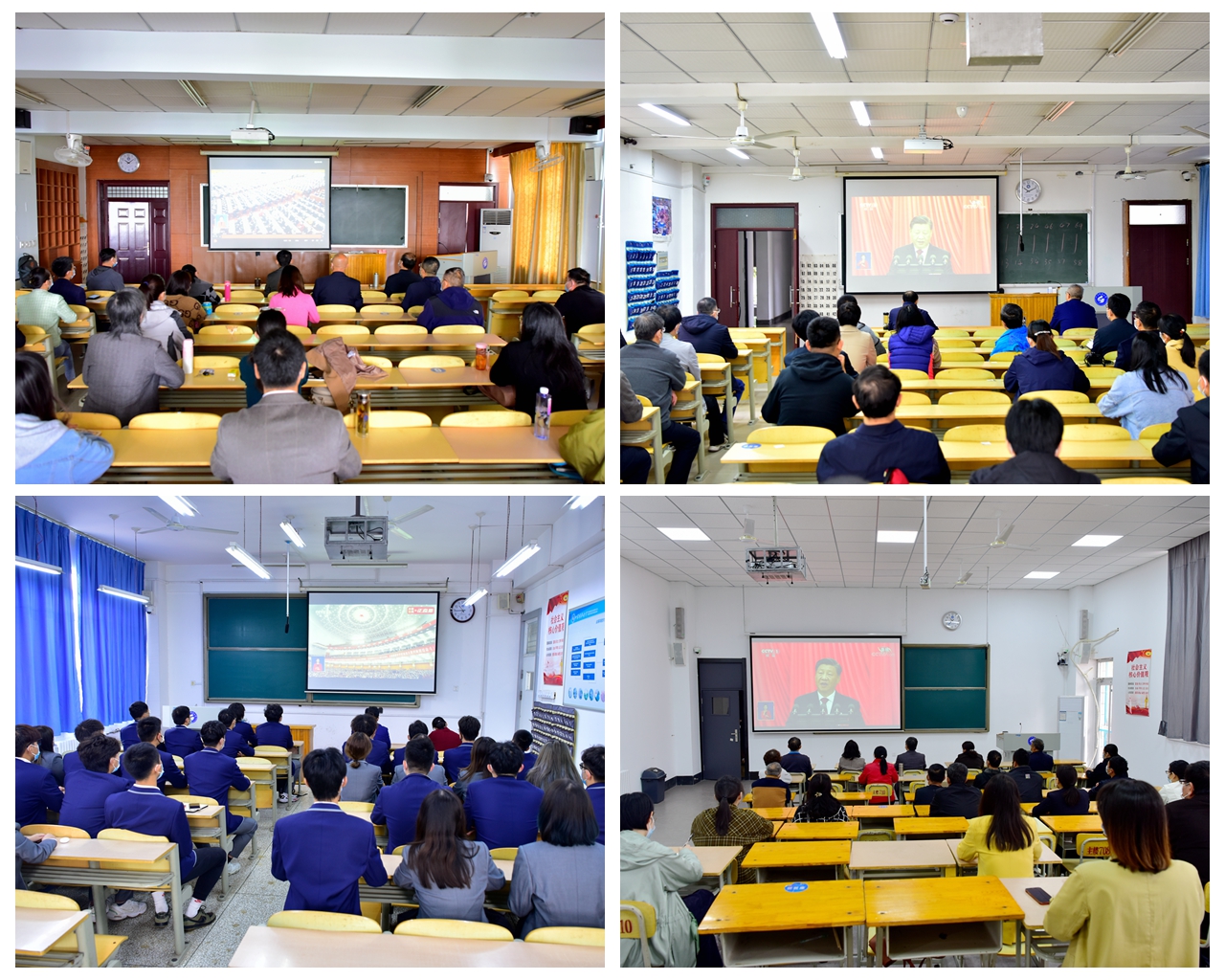 在集中观看直播现场,广大师生认真听取了习近平总书记代表第十九届中央委员会向大会作的报告,深入了解报告各部分内容,并就报告中的新思想、新观点进行探讨和交流,深刻认识和把握大会报告的精神实质和丰富内涵。开幕会结束后,师生们热议党的二十大报告,纷纷表达了自己的感受,表示要迅速把思想和行动统一到党的二十大精神上来,掀起学习宣传贯彻党的二十大精神的热潮。