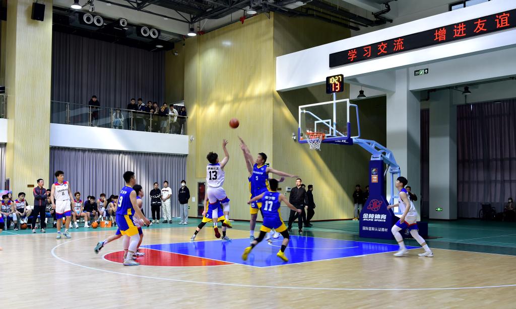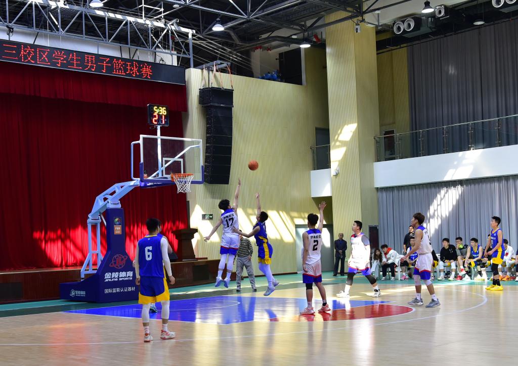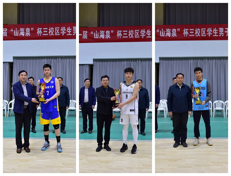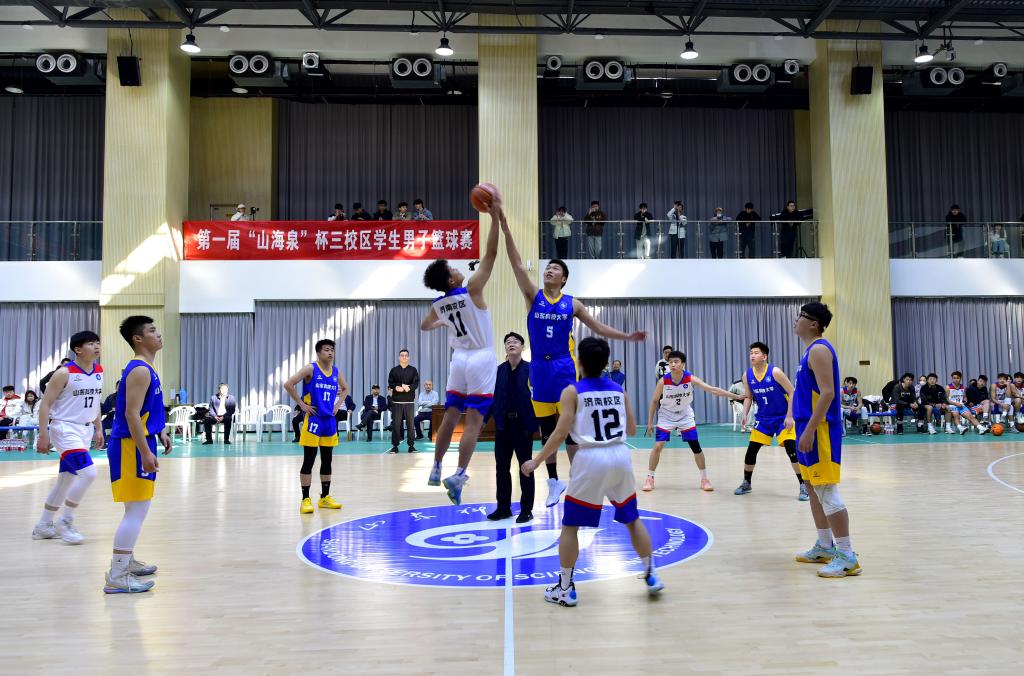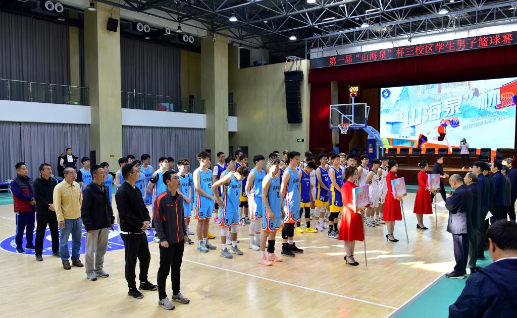 4月8日,第一届“山海泉”杯三校区学生男子篮球赛在济南校区成功举办。yl23455永利党委副书记贾长响,体育学院党总支书记兼院长、校体委会副主任田启发,泰安校区管委副主任方亨福,校团委书记尹立明,公共课教学部主任朱学军,基础课部党总支书记兼主任管清佩分别出席开幕式和闭幕式,仪式由校区管委副主任郭加书主持。来自青岛、泰安和济南三校区的参赛队员、教练员、裁判员,驻济校友代表,yl23455永利师生代表观看了比赛。