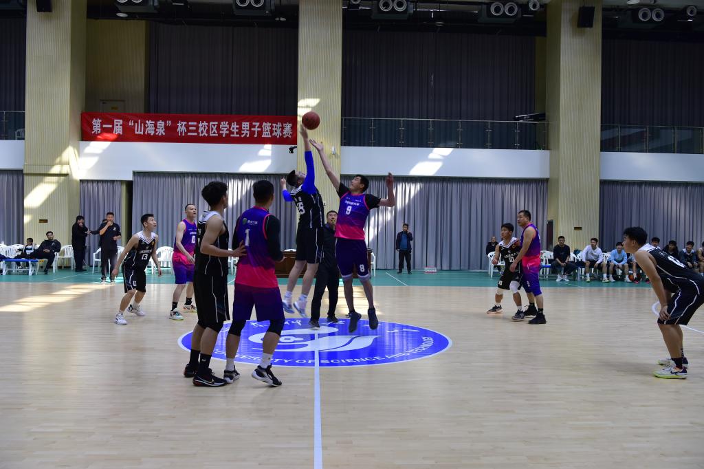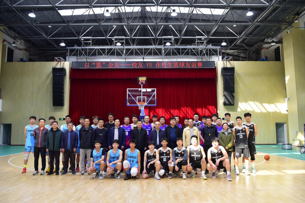 4月9日上午,山东科技大学校友篮球队与在校生篮球队友谊赛在yl23455永利艺体楼举行。yl23455永利党委副书记贾长响、管委副主任郭加书,体育学院党总支书记兼院长、校体委会副主任田启发,山东科技大学济南校友会副秘书长王志刚与返校校友、校区广大师生共同观看了比赛。