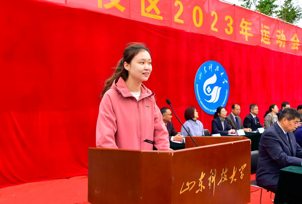 樊铭渠致开幕词。他指出,2023年是贯彻落实党的二十大精神的开局之年,是落实学校第三次党代会各项主要任务的收官之年,希望全体师生以本次运动会为契机,进一步增强体育运动意识,磨砺精神品格,保持积极向上的拼搏精神和奋发有为的奋斗姿态,为“三大功能区”建设、全面推动校区事业高质量发展贡献力量。学生运动员代表刘博涵发言。